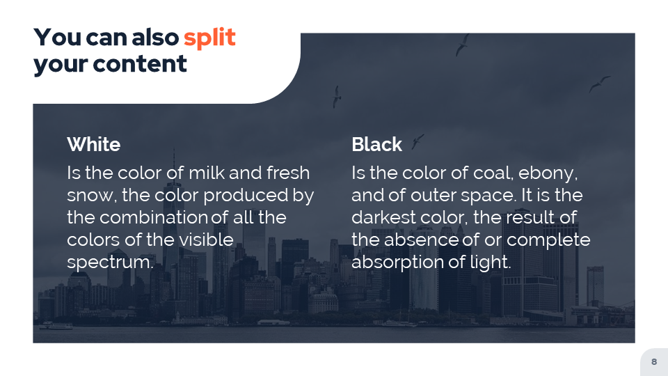 Estupenda presentación con un formato moderno y un formato 16:9, por nuestra parte la recomendamos para presentación de proyectos o temas corporativos, sin embargo puede ser utilizada en una gran cantidad de temáticas ya que se encuentra bastante completa. Tiene una gran cantidad de iconos y figuras editables, lo que lo hace perfecto para poder generar presentaciones de gran calidad. En lo personal recomiendo que las mezcles con algunas de las otras presentaciones para powerpoint que tenemos disponibles en nuestro sitio.